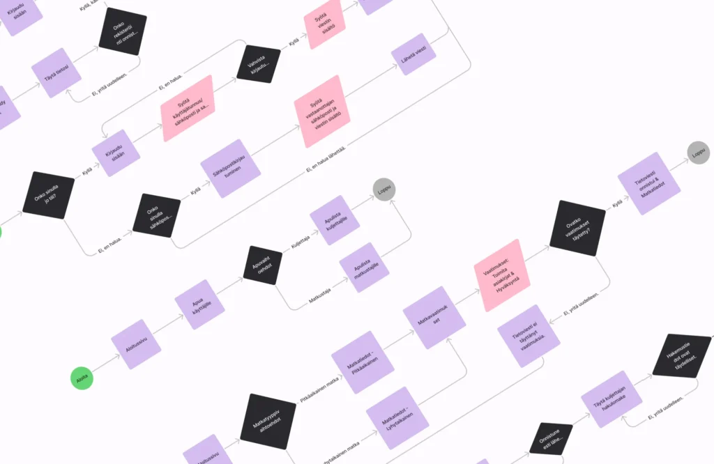 Kuvittele sovellus, jossa käyttäjä liikkuu kuin itsestään oikeaan suuntaan, jossa tekoäly auttaa häntä tekemään päätöksiä ja jossa koko palvelukokemus tuntuu sujuvalta ja henkilökohtaiselta. Tämä ei synny sattumalta. Tämän kaiken suunnittelun perusta on käyttäjäpolku. Kun ymmärrämme, miten ihminen todella liikkuu palvelussa ja mitä hän tarvitsee eri vaiheissa, pystymme tunnistamaan myös ne kohdat, joissa tekoäly tuottaa aitoa hyötyä.